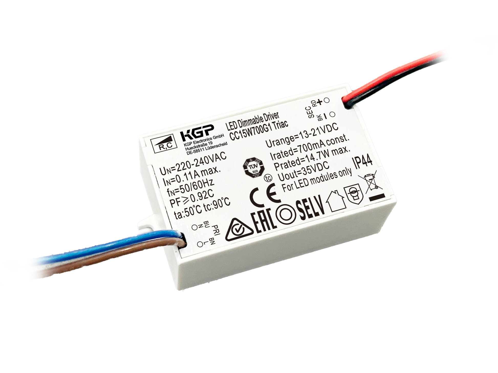 - CC15W700G1: 700mA / 13–21V / 9.1–14.7W / PF ≥0.92 / Eff 78.5% / No-load ≤35V